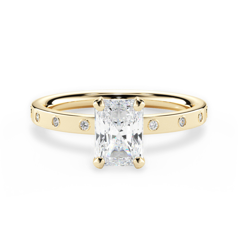 Immerse yourself in elegance with our exquisite 10K Gold Wedding Ring for women, featuring a stunning Princess shaped moissanite stone that captures the timeless essence of love.