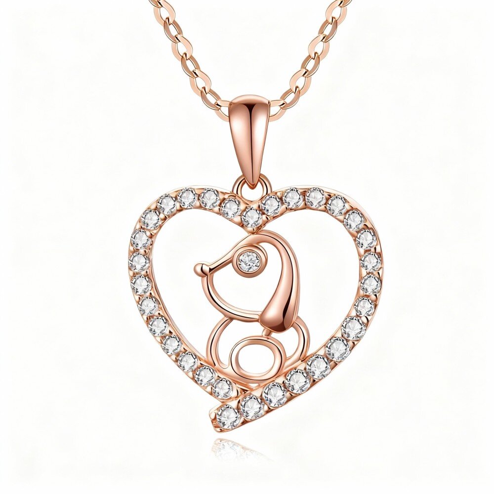 Enhance your style with our elegant 10K Rose Gold Pendant Necklace featuring a stunning Cubic Zirconia dog charm, perfect for women who love luxury.