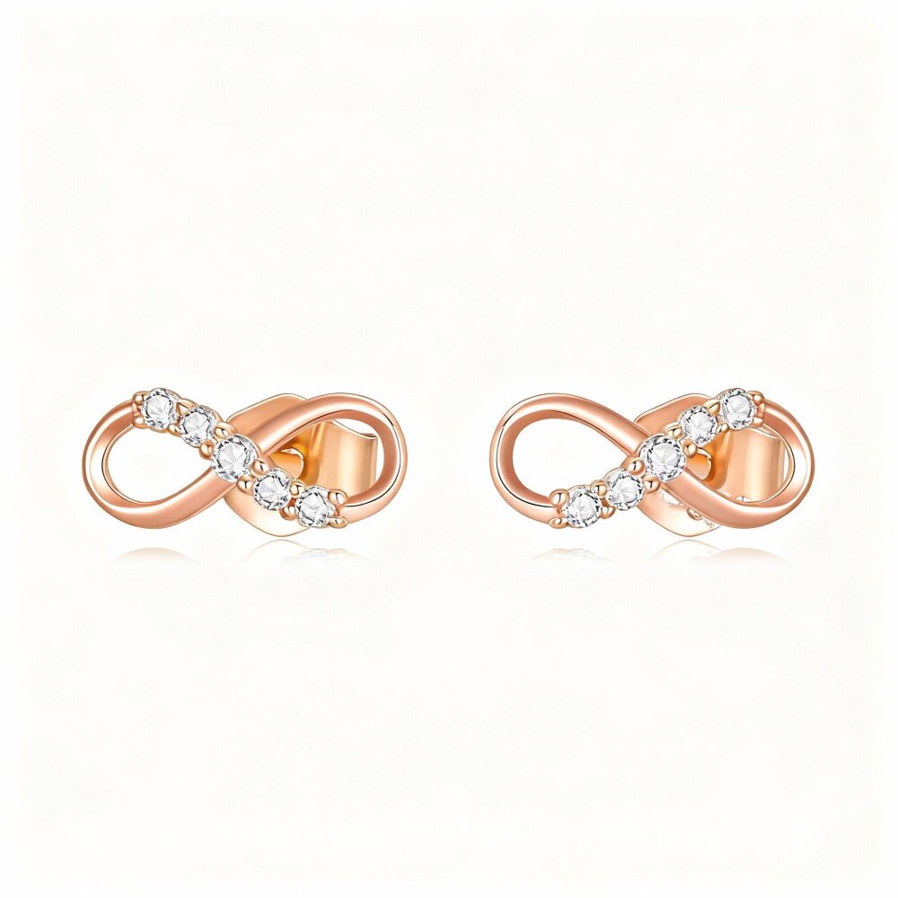 Experience the charm of our 10K Rose Gold Stud Earrings, showcasing stunning diamonds in a beautifully crafted infinity symbol design.