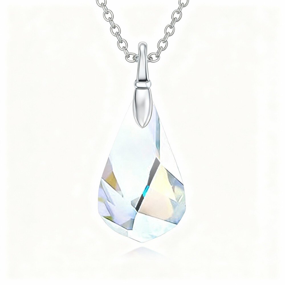 Enhance your elegance with our exquisite 10K White Gold Pendant Necklace featuring a stunning drop-shaped crystal.
