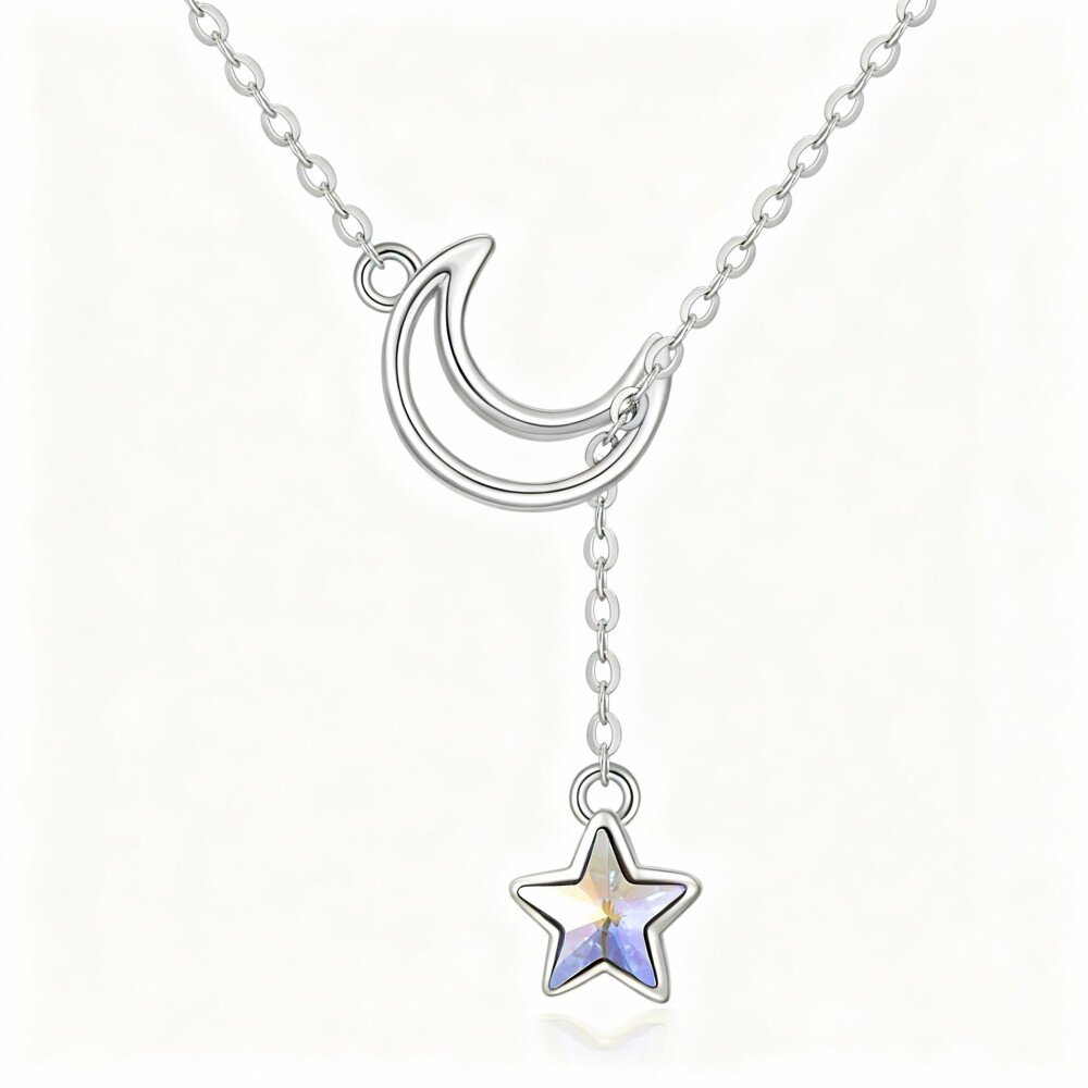 Discover the beauty of our exquisite adjustable White Gold star necklace, designed to enhance your style with its elegant design and sparkling accents.