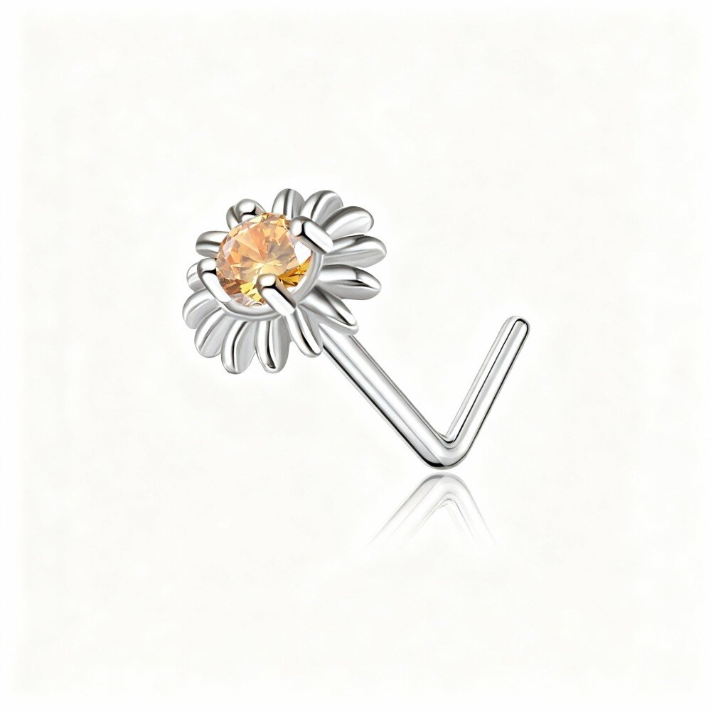 Explore our beautiful 10K White Gold Nose Ring featuring a delightful Sunflower design, perfect for women who cherish elegance and personal flair.