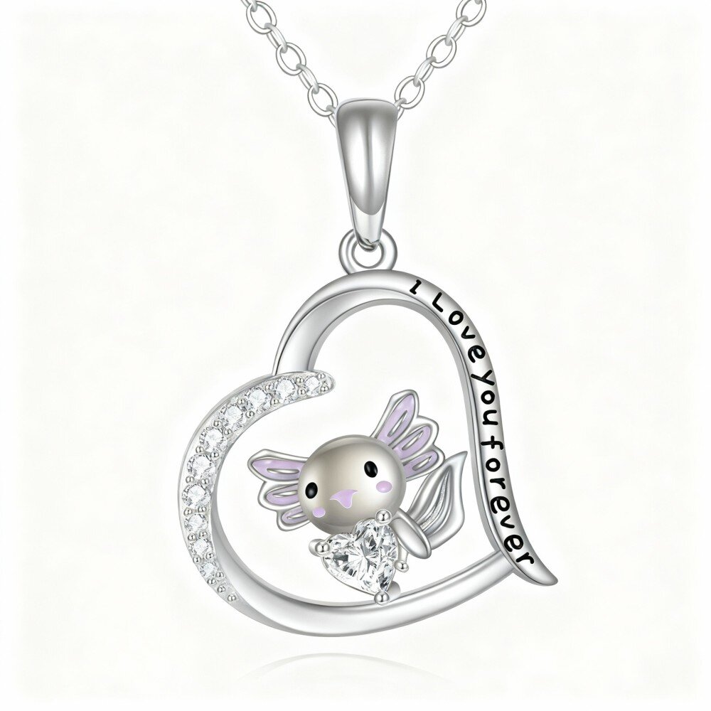 Our Elegant Personalized Birthstone Heart Necklace is a perfect harmony of style, sentiment, and craftsmanship. Featuring a delightful axolotl design adorned with sparkling Cubic Zirconia, this necklace is not just a piece of jewelry; it's a heartfelt expression of love and personality. Each necklace is customizable with a birthstone, making it a truly unique gift for any special occasion, whether it be birthdays, anniversaries, or a simple gesture of appreciation. The enchanting 'I Love You Forever' message adds an extra layer of meaning, ensuring that the wearer feels cherished every time they wear it. Made from premium materials, this 14K White Gold necklace is designed to last, offering enduring beauty that complements any outfit. Whether you’re dressing up for a special event or adding a touch of elegance to your everyday look, this necklace will elevate your style and become a treasured piece in your collection.
