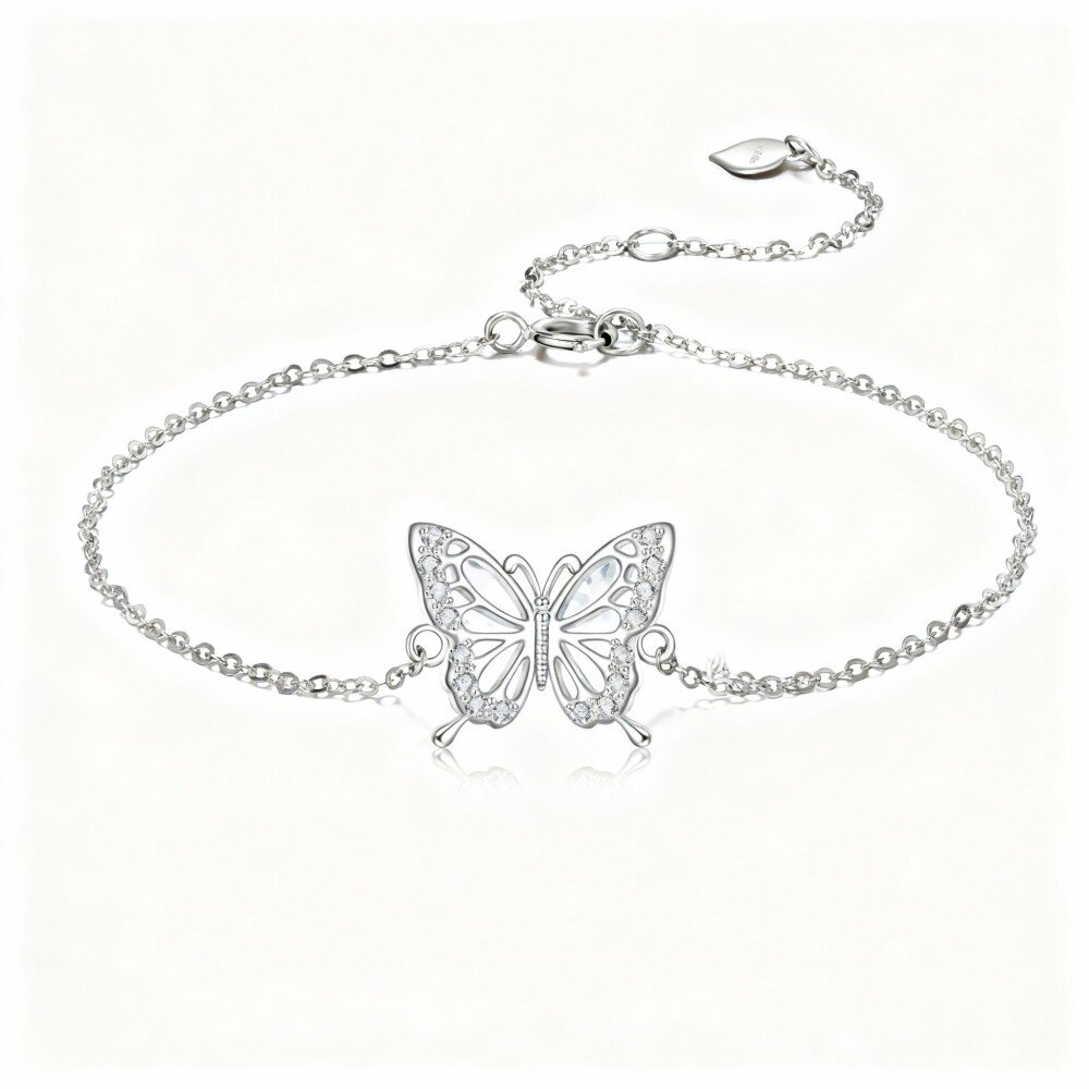Discover the elegance of our exquisite 10K White Gold Charm Bracelet featuring sparkling Cubic Zirconia butterflies, perfect for any jewelry lover.