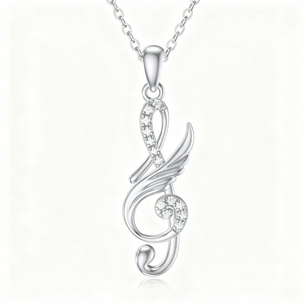 Enhance your style with our 10K White Gold Music Symbol Pendant Necklace, embellished with dazzling Cubic Zirconia for a stylish touch.