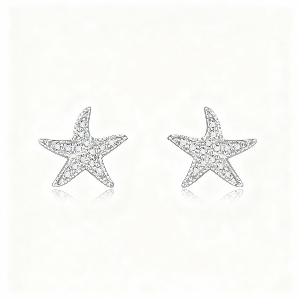 Explore the captivating charm of our 10K White Gold Starfish Stud Earrings, perfect for the modern woman who seeks elegance and playful beauty.