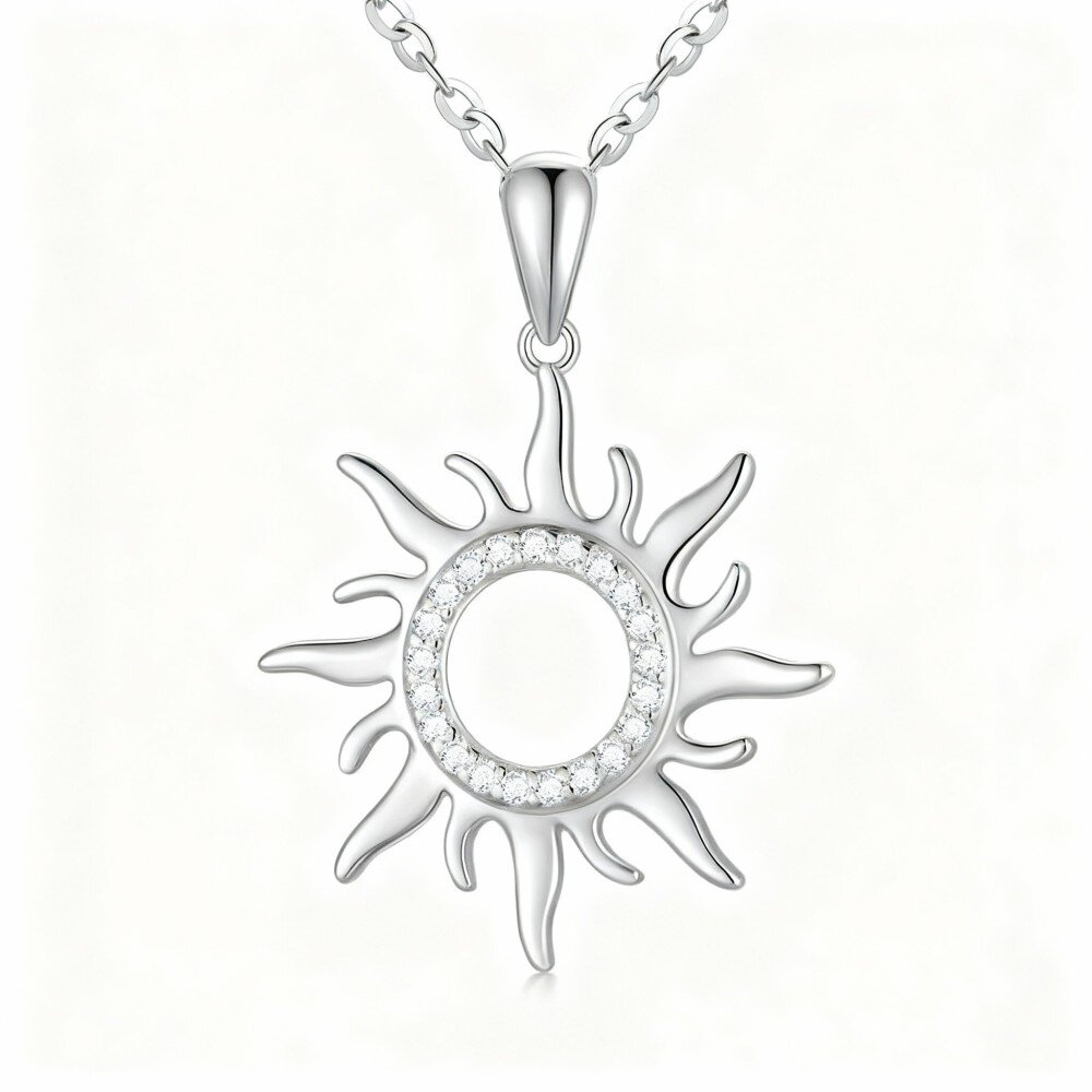 Experience the perfect blend of elegance and sophistication with our 10K White Gold sun pendant necklace featuring a dazzling Moissanite gem.