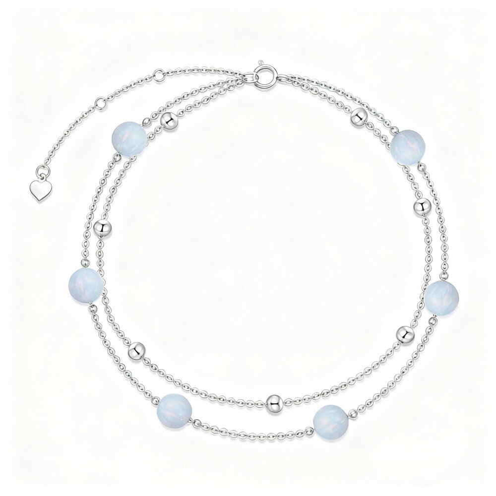 Discover the perfect blend of elegance and style with our 10K White Gold Multi-layered Charm Anklet featuring brilliant opals and vibrant beads.