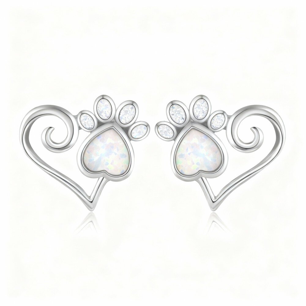 Elevate your style with our exquisite 10K White Gold Stud Earrings featuring stunning opal stones and a unique footprint design.