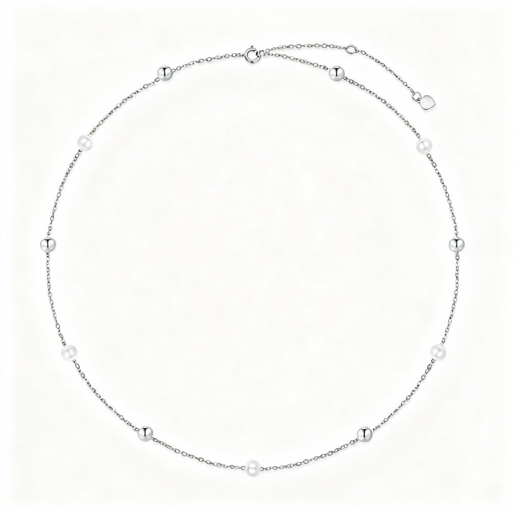 Discover the exquisite charm of our 10K White Gold Pearl Bead Station Necklace, crafted for women who appreciate elegance and quality in jewelry.