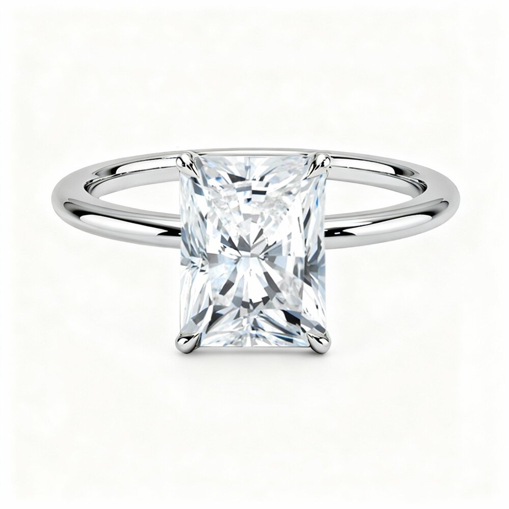 Our exquisite 10K White Gold Wedding Ring for women features a stunning Princess shaped Moissanite gemstone, meticulously crafted to shine with unparalleled brilliance – its timeless design and clear, square-cut gem make it the perfect symbol of everlasting love.