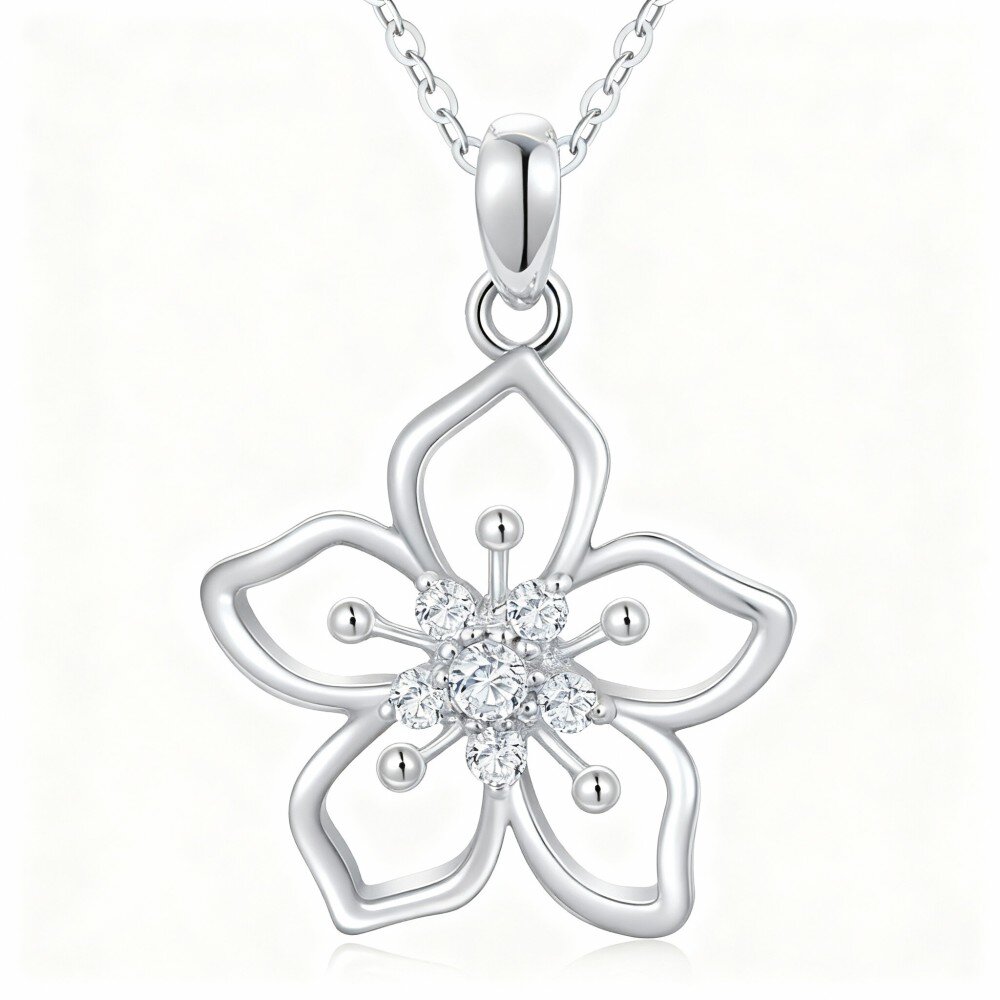 Discover the beauty of our exquisite 10K White Gold Cherry blossom Pendant necklace, adorned with a brilliant Moissanite gemstone centerpiece for those who cherish elegance.