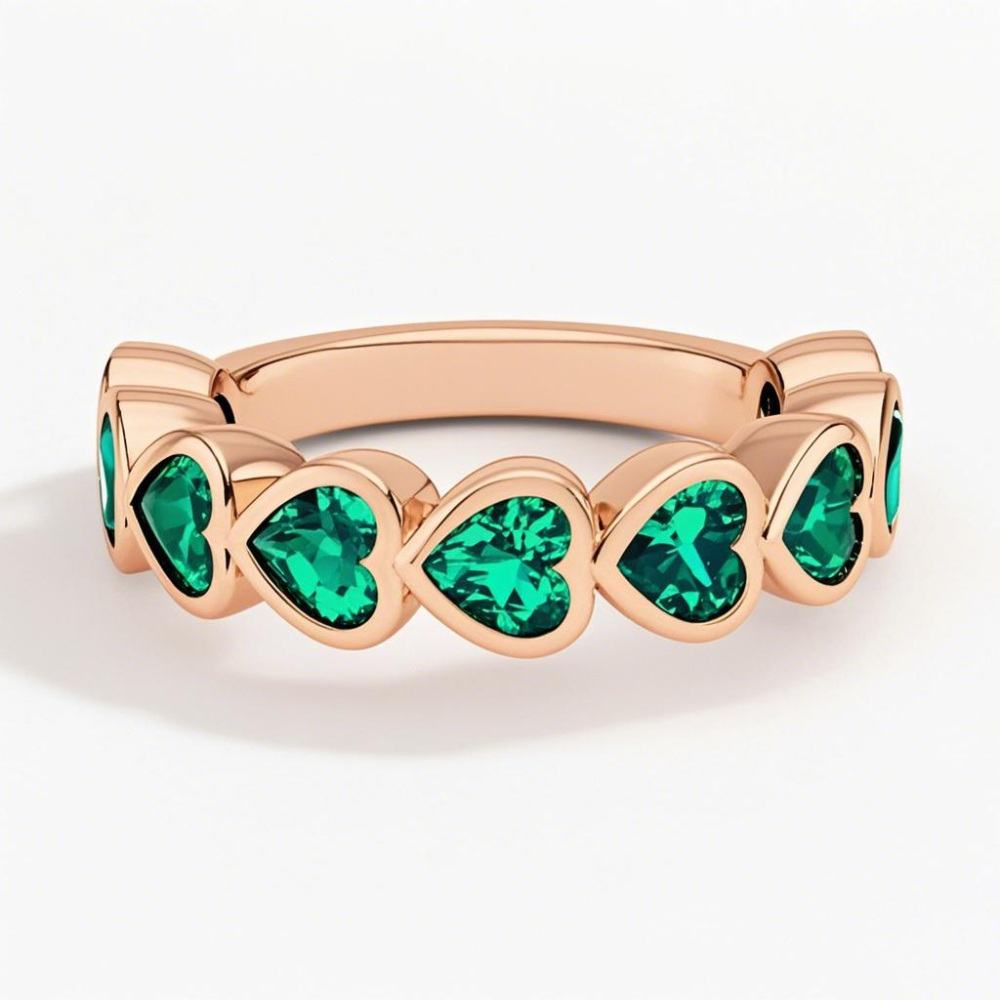 Elevate your engagement with our stunning 14K gold wedding ring, featuring a beautiful heart cut lab-created emerald at its center, designed for couples who value both elegance and sustainability. Crafted in luxurious rose gold with a vintage flair, this custom piece showcases a total weight of 1 CT. T.W and is complemented by dazzling side stones weighing an additional 1 CT, making it a perfect testament to your everlasting love.