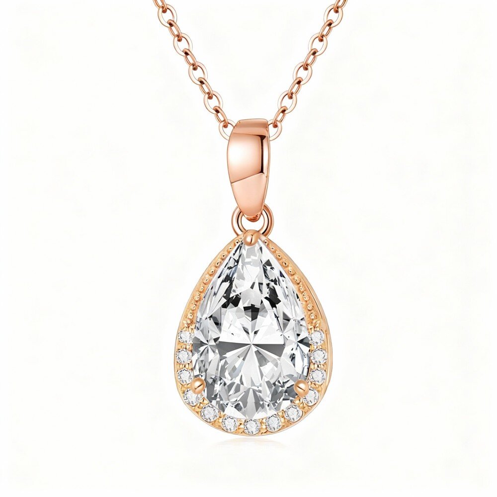 Elevate your elegance with our stunning 14K Rose Gold Pendant Necklace, featuring a pear-shaped cubic zirconia drop that beautifully mimics the brilliance of a diamond, making it the perfect accessory for any woman who loves the timeless charm of Rose Gold.