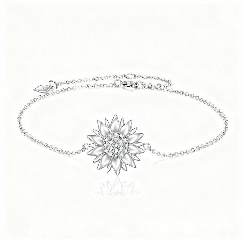 Our stunning 14K White Gold Charm Bracelet for women features a delicate sunflower design adorned with sparkling Cubic Zirconia, making it the perfect accessory for adding a touch of elegance and shine to any outfit.