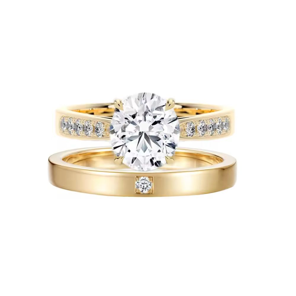 Crafted from premium 18K gold, our bridal set showcases exceptional moissanite center stones renowned for their dazzling fire and superior durability compared to traditional diamonds. Each ring undergoes meticulous hand-finishing to ensure perfect symmetry and lasting brilliance. The enhanced gold purity offers richer color and better resistance to tarnishing, making these heirloom-quality rings ideal for daily wear. Designed as matching sets, they feature secure classic settings that highlight the stone's optical properties while providing comfort. Our collection represents the pinnacle of fine jewelry craftsmanship, blending timeless design with modern gemstone technology for a symbol of love that truly endures. These rings are accompanied by premium presentation cases and authenticity certificates, ensuring a complete luxury experience for discerning couples worldwide.