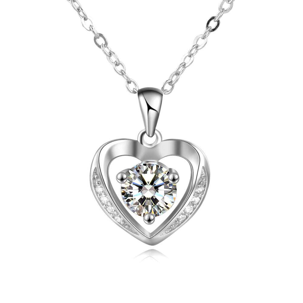 Crafted from high-quality sterling silver, this pendant necklace features a heart-shaped design that symbolizes love and elegance. The dazzling cubic zirconia stones perfectly mimic the brilliance of diamonds, offering an affordable yet stunning shine. The elegant white gold plating not only enhances its beauty but also provides a durable, tarnish-resistant finish, making it an ideal accessory for any occasion or cherished gift for a loved one.