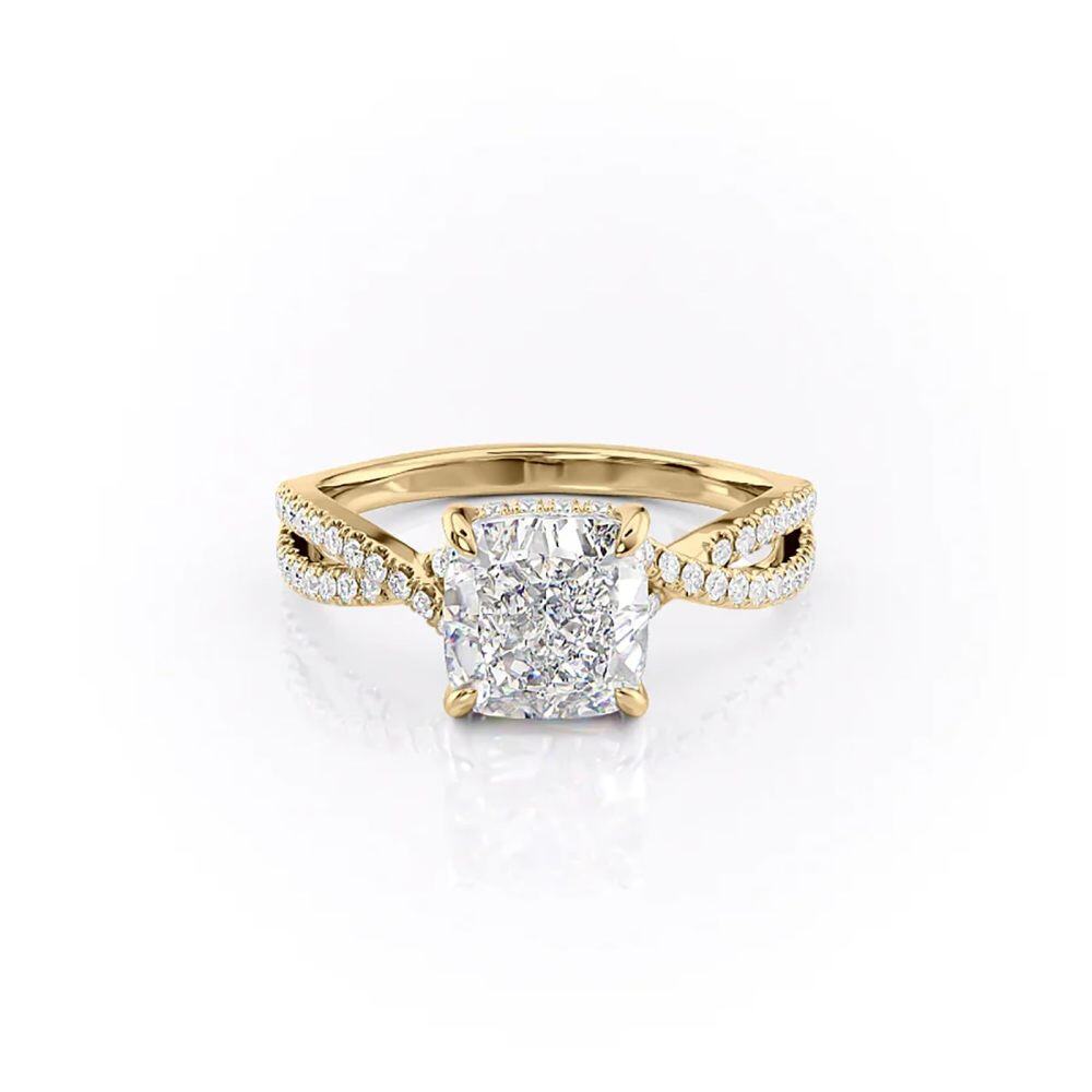 Discover the epitome of elegance with our dazzling engagement ring, meticulously crafted from high-quality sterling silver and adorned with a brilliant Moissanite gem, all beautifully enhanced with a luxurious yellow gold plating—perfect for the modern woman seeking timeless beauty.